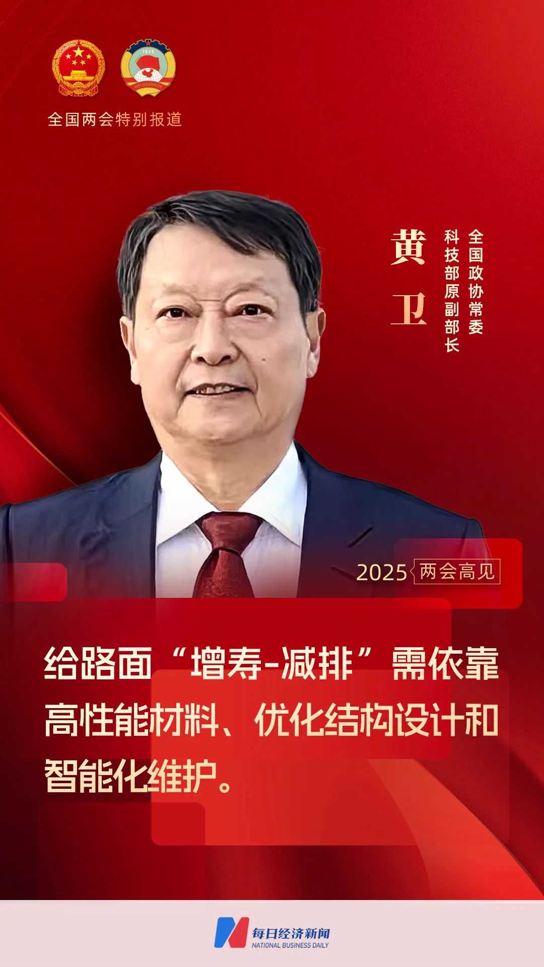 今年政府工作报告提出“协同推进降碳减污扩绿增长,加快经济社会发展全面绿色转型。”围绕如何减少交通基础设施能耗、交通基础设施的韧性建设等话题,在全国两会召开期间,黄卫接受了《每日经济新闻》记者(以下简称NBD)专访。