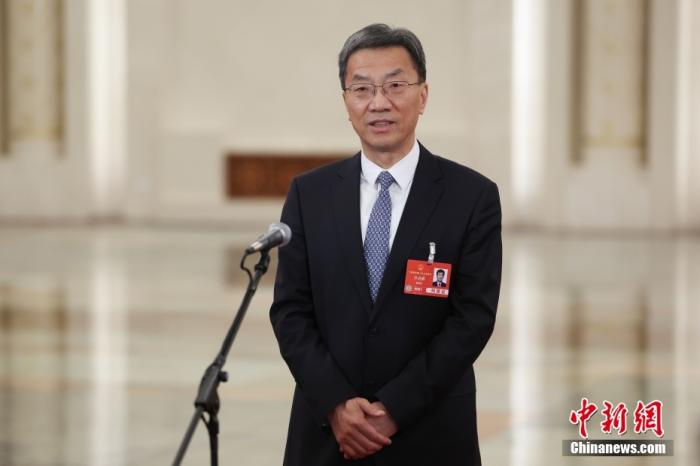 国家市场监督管理总局局长罗文接受媒体采访。 中新社记者富田摄