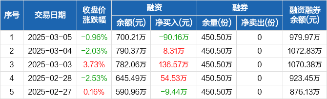 电池50ETF:融资净偿还90.16万元,融资余额700.21万元(03-05)