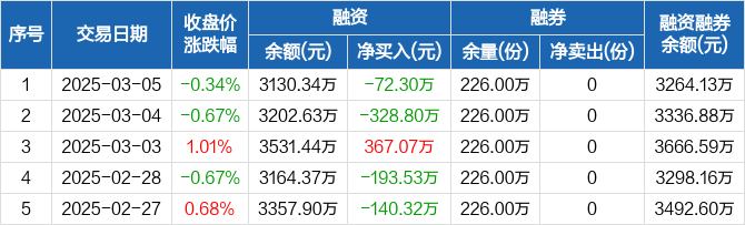 化工ETF:融资余额3130.34万元,创近一年新低(03-05)