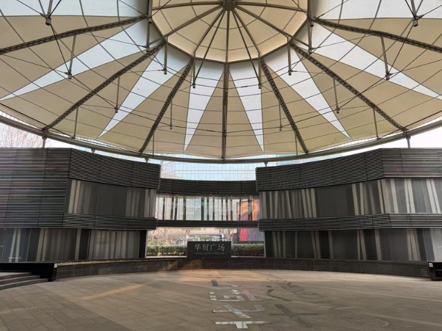 华贸独栋的广场中央蓝鲸新闻记者王涵艺摄