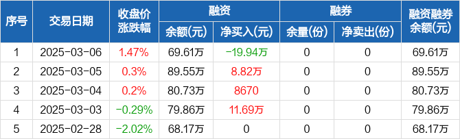 中证A500ETF基金:融资净偿还19.94万元,融资余额69.61万元(03-06)