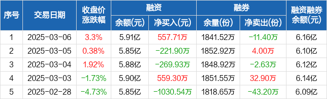 芯片ETF:融资净买入557.71万元,融资余额5.91亿元(03-06)