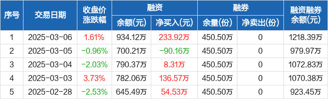 电池50ETF:融资净买入233.92万元,融资余额934.12万元(03-06)