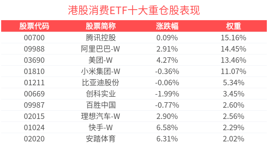 费率方面,港股消费ETF管理费率为0.50%,托管费率为0.10%。