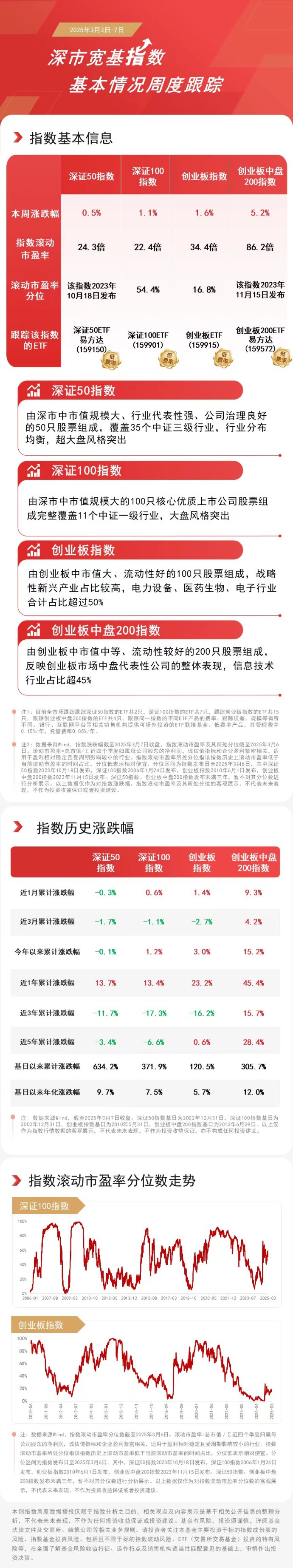 本周,创业板中盘200指数上涨5.2%,创业板指数上涨1.6%,深证100指数上涨1.1%,深证50指数上涨0.5%。