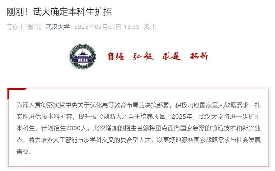 名校扩招!清华、西交、武大等相继宣布