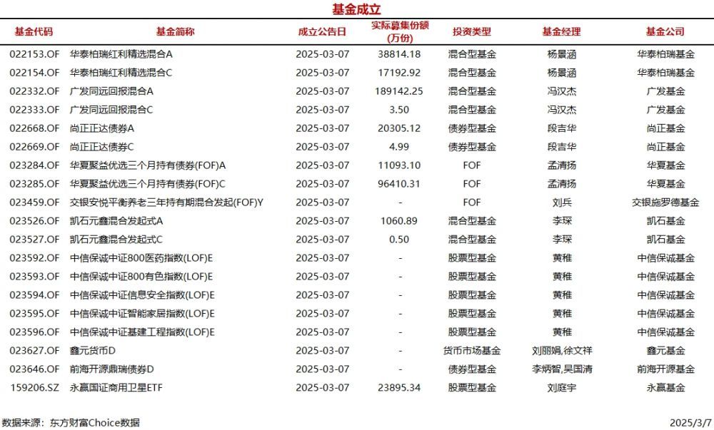 每经AI快讯,据东方财富Choice数据统计,今日共有19只基金公告成立(A/C类分开计算),包括6只混合型基金、6只股票型基金、3只债券型基金、3只FOF、1只货币市场基金。