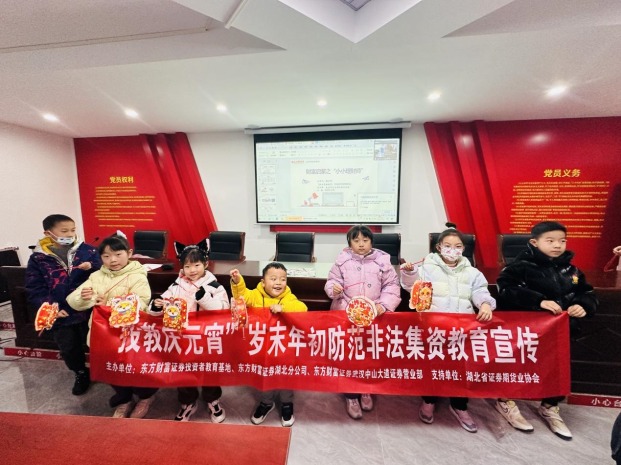 2025年2月10日,在湖北省证券期货业协会的支持下,东方财富证券投资者教育基地联合武汉市江岸区丹水池街道丹西社区,深入开展了以“财富启蒙之‘小小理财师’”为主题的投资者教育活动,旨在通过生动有趣的方式,激发小朋友对金融的兴趣,从小培养理财意识和风险认知能力。本次活动由东方财富证券湖北分公司和东方财富证券武汉中山大道证券营业部(以下简称“营业部”)联合承办,通过线下现场授课和线上直播的形式开展,共32名社区小朋友及家长参加。