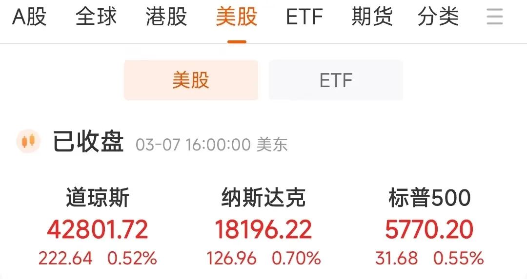 周五美股三大指数集体上涨,其中道琼斯涨222.64点,涨幅0.52%;纳斯达克涨126.96点,涨幅0.7%;标普500涨31.68点,涨幅0.55%。本周,道指累跌2.37%,纳指累跌3.45%,标普500指数累跌3.1%。