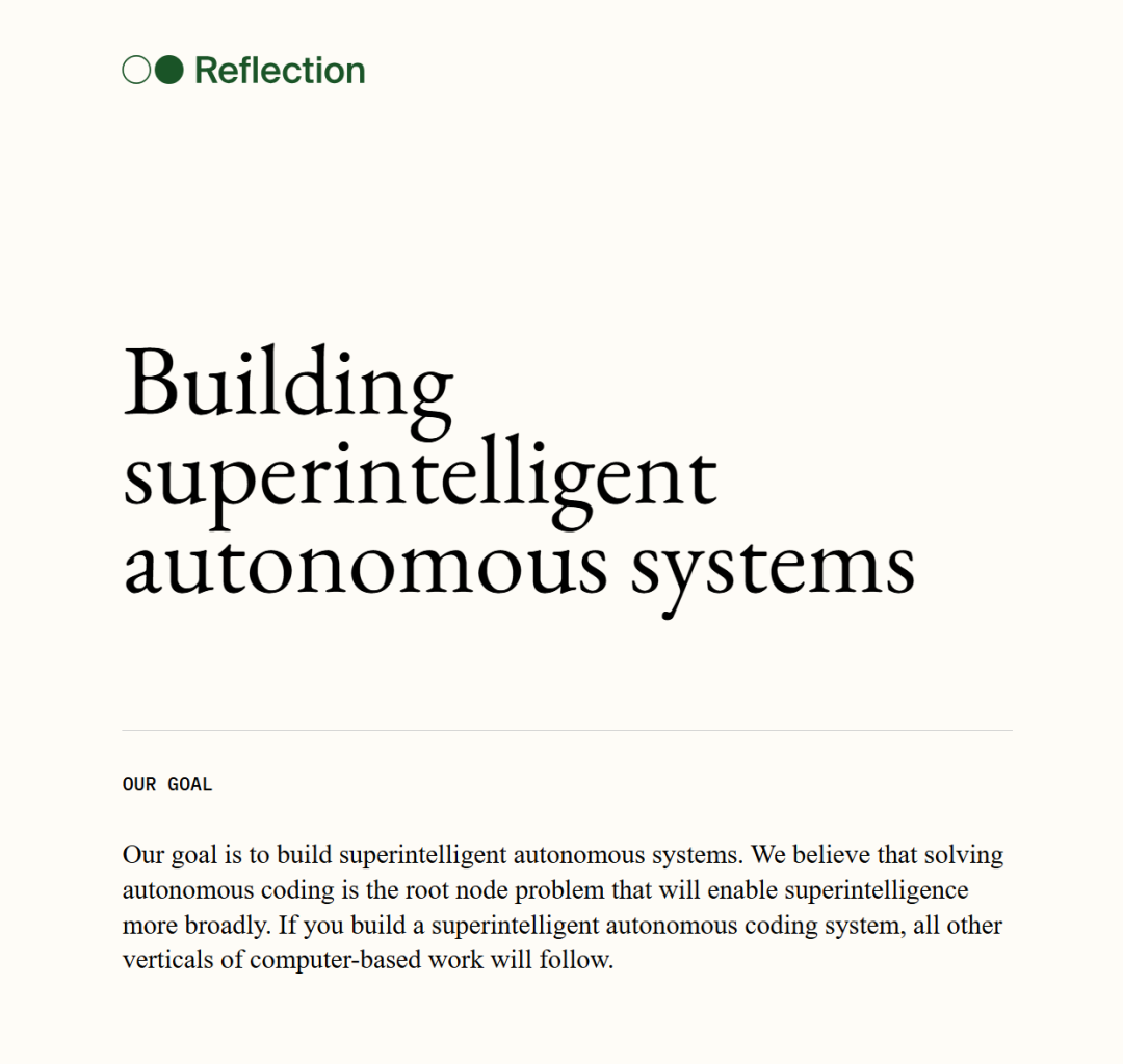 作为实现这一目标的第一步,该公司正在构建一个自主编程工具。Reflection AI认为,创建此类工具所需的技术构建模块可以重新用于构建超级智能。