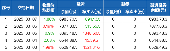 标普ETF:融资净偿还894.13万元,融资余额6983.7万元(03-07)
