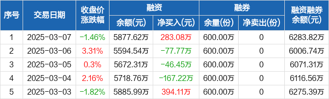 芯片ETF龙头:融资净买入283.08万元,融资余额5877.62万元(03-07)