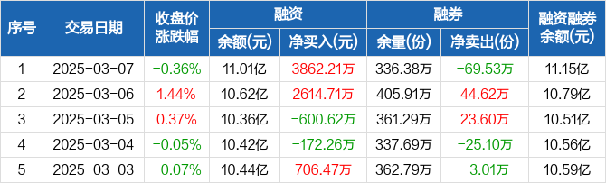 沪深300ETF:融资净买入3862.21万元,融资余额11.01亿元(03-07)