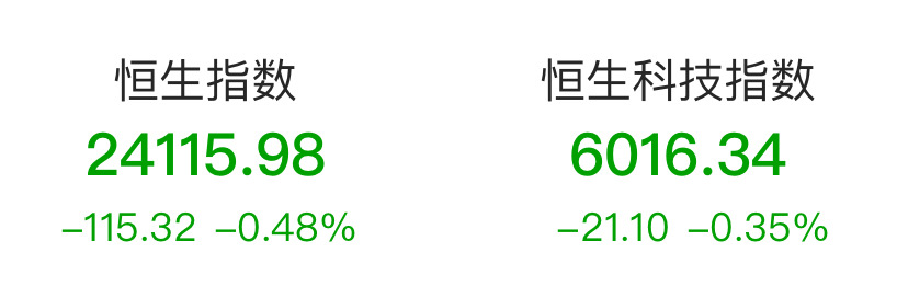 恒生指数低开0.48% 恒生科技指数跌0.35%