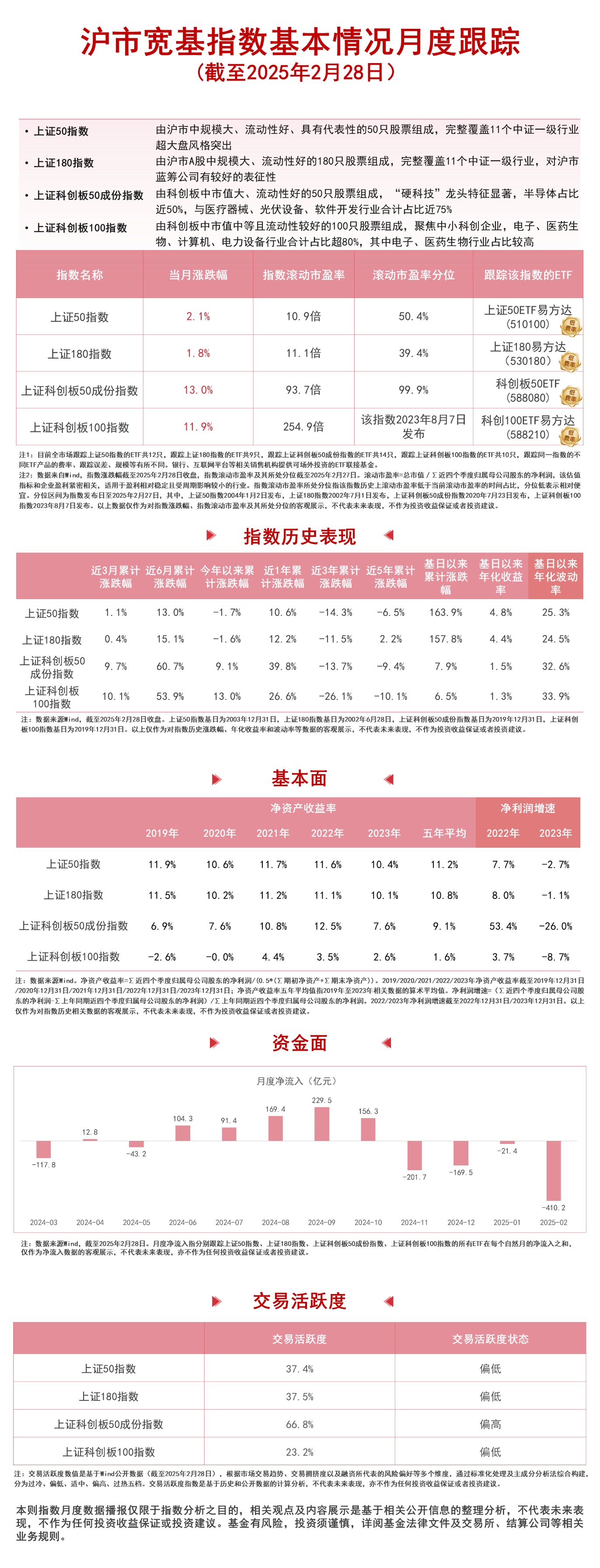 2月,科技板块表现强势,指数方面,上证科创板50成份指数上涨13%,科创100指数上涨11.9%,上证50指数上涨2.1%,上证180指数上涨1.8%。