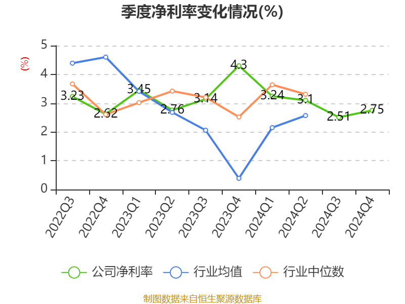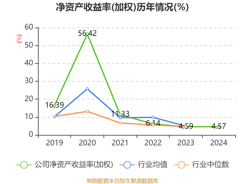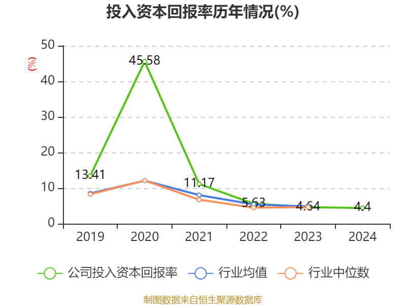 数据显示,2024年公司加权平均净资产收益率为4.57%,较上年同期下降0.02个百分点。公司2024年投入资本回报率为4.4%,较上年同期下降0.24个百分点。
