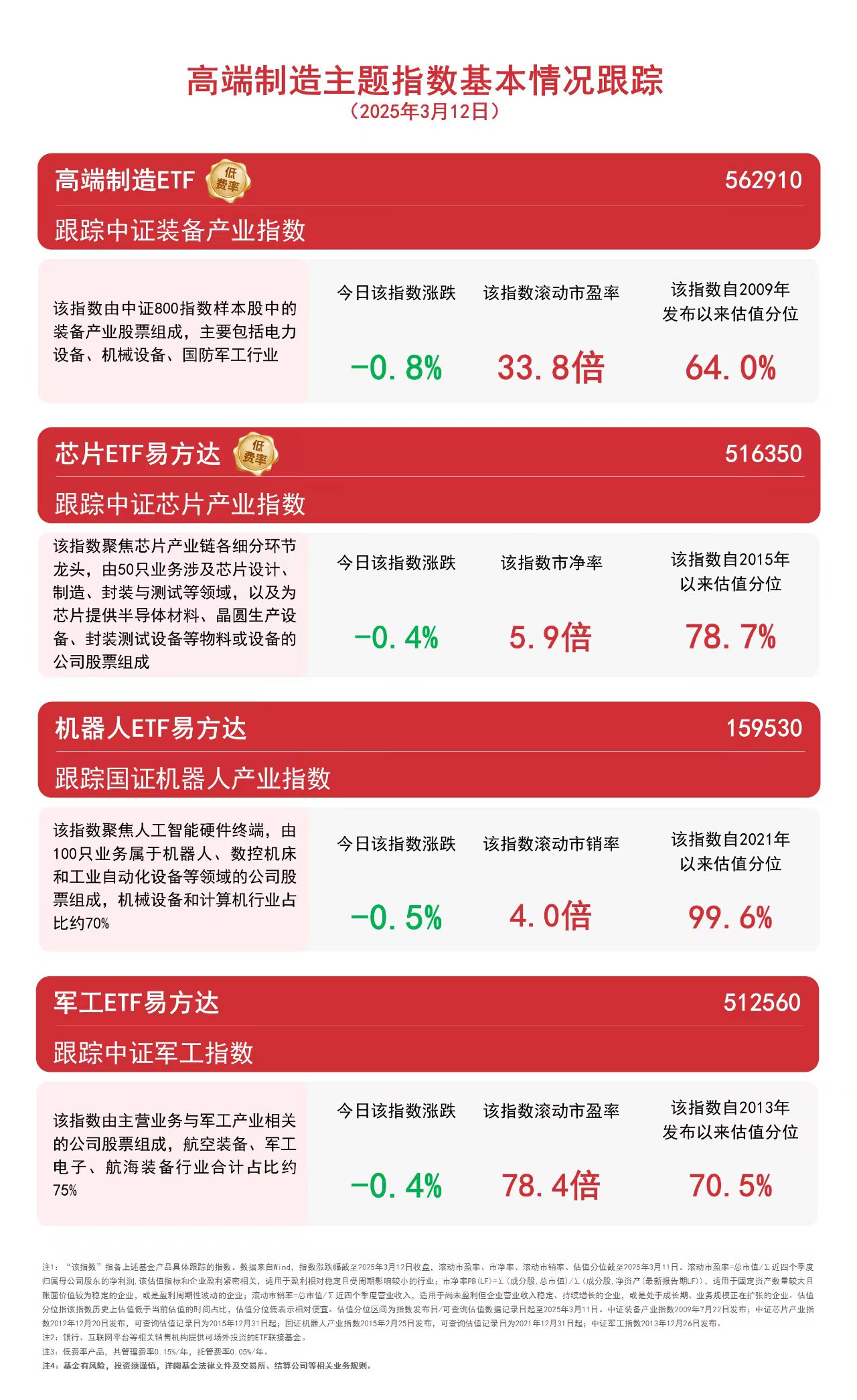截至收盘,中证装备产业指数下跌0.8%,中证芯片产业指数下跌0.4%,国证机器人产业指数下跌0.5%,中证军工指数下跌0.4%。截至昨日,机器人ETF易方达(159530)连续21个交易日获资金净流入,合计金额约4亿元,最新规模创历史新高。