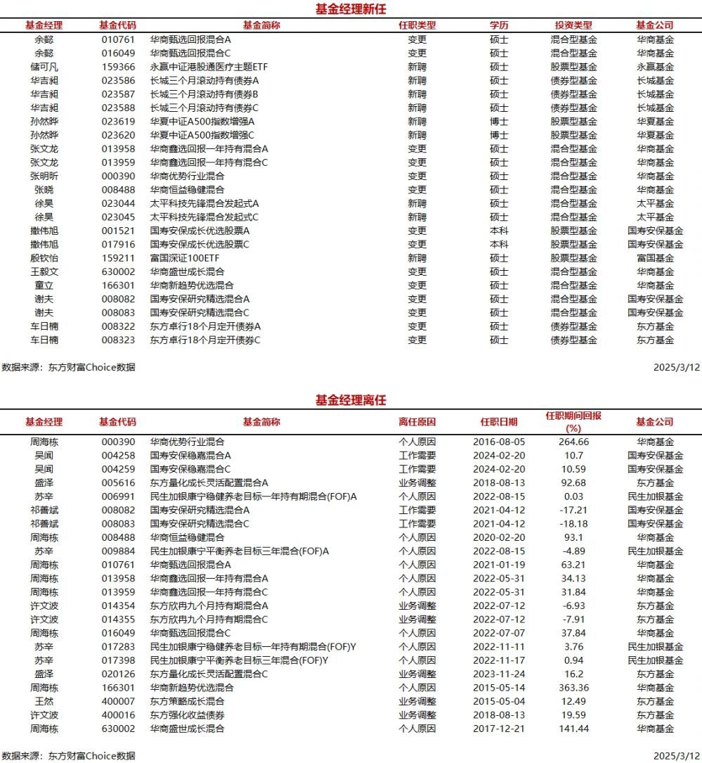今日新聘基金经理14人,离任7人