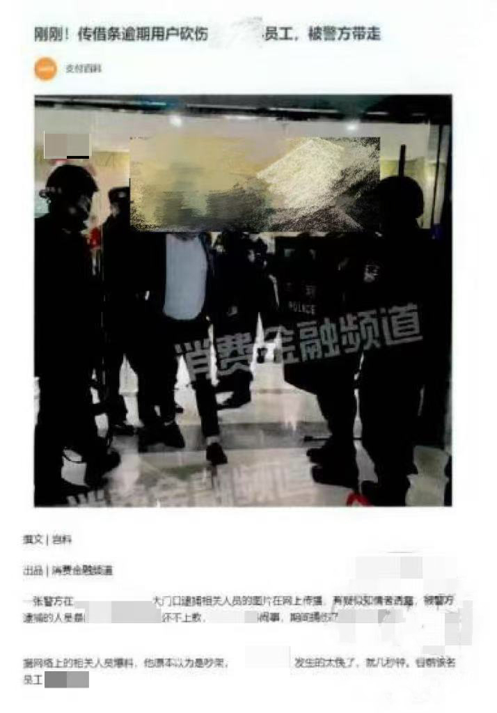 2022年1月,寇某通过“消费金融频道”发布了一篇题为《刚刚!传借条逾期用户砍伤某公司员工,被警方带走》的文章。文章将发生在某外地公司的砍人事件,张冠李戴到上海一家公司,并在事件尚未清晰的情况下,暗示该公司逼迫借款人还款才导致对方持刀伤人。
