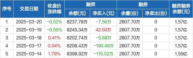 1000ETF:融资净偿还7.56万元,融资余额8237.78万元(03-20)