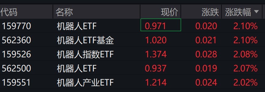 机器人概念股走强,相关ETF普涨逾2%