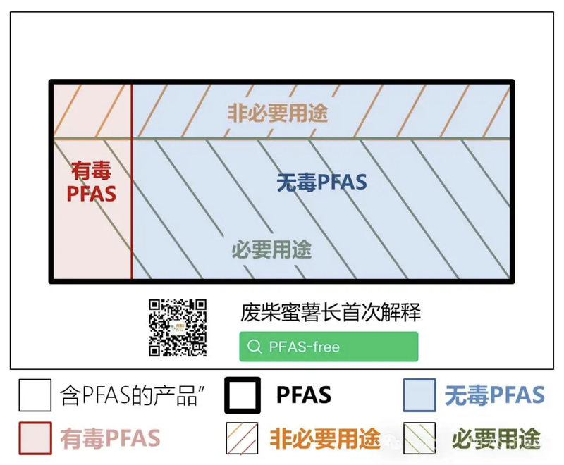 吴克安强调,按照目前欧美对PFAS的监管分类,可分为必要用途和非必要用途的PFAS。比如在各种工业、芯片制造、医用、消防等领域是有些不可替代的就属于必要用途,但在普通纺织、食品包装、儿童玩具等领域就属于非必要用途,现在非必要领域的“去氟化”已经成为一个新的环保趋势。