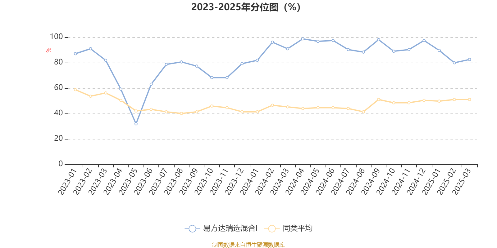 通过所选区间该基金净值增长率分位图,可以观察该基金与同类基金业绩比较情况。图为坐标原点到区间内某时点的净值增长率在同类基金中的分位数。