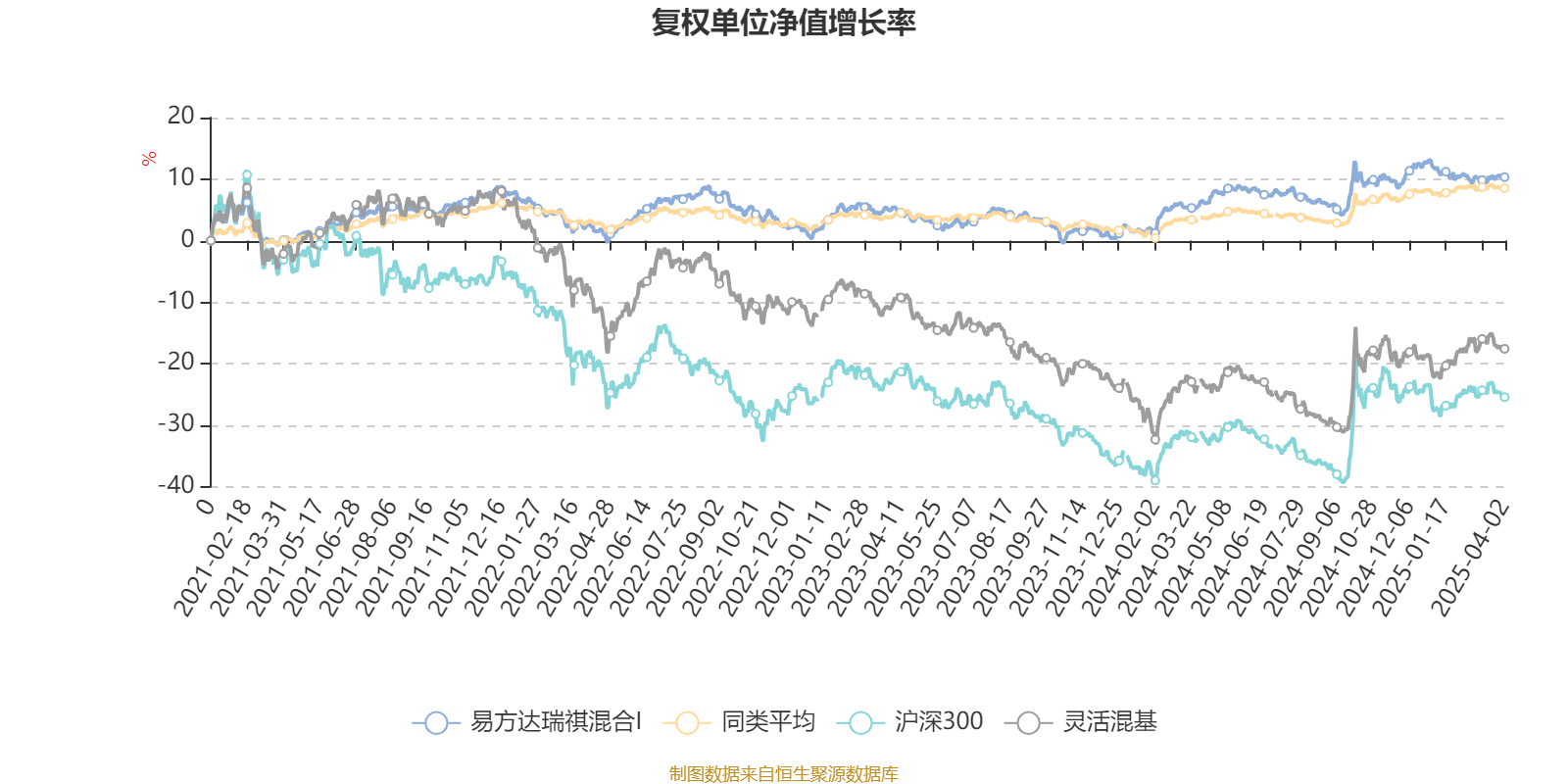 截至4月2日,易方达瑞祺混合I近三个月复权单位净值增长率为-1.69%,位于同类可比基金148/155;近半年复权单位净值增长率为-2.28%,位于同类可比基金145/155;近一年复权单位净值增长率为3.63%,位于同类可比基金94/155;近三年复权单位净值增长率为7.33%,位于同类可比基金55/154。