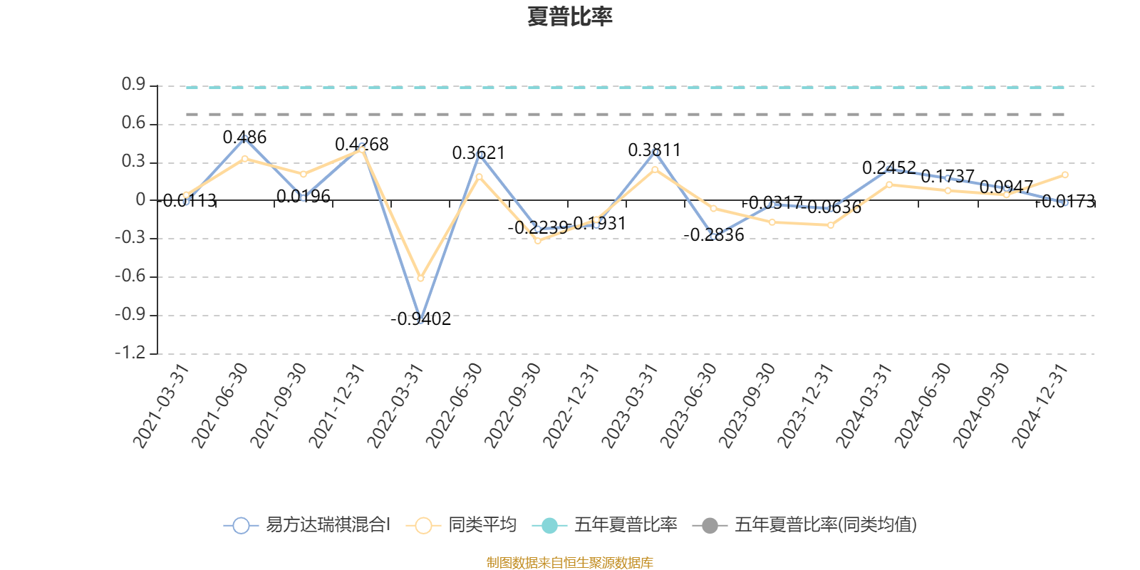 截至12月31日,基金近三年夏普比率为0.2261,位于同类可比基金48/153。