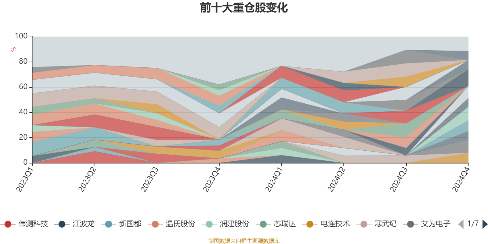 该基金持股集中度较高,近2年前十大重仓股集中度长期超过60%。截至2024年末,基金十大重仓股分别是比亚迪、阳光电源、艾为电子、唯捷创芯、恒玄科技、电连技术、爱玛科技、信捷电气、恒立液压、三环集团。