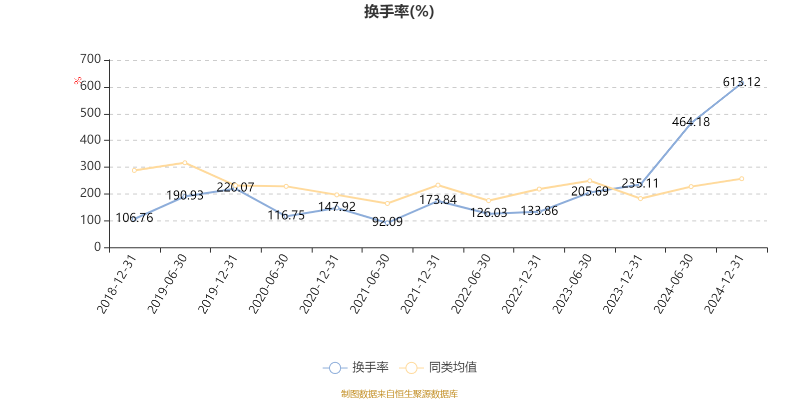 截至2024年12月31日,基金最近一年换手率约1070.95%,持续1年高于同类均值。