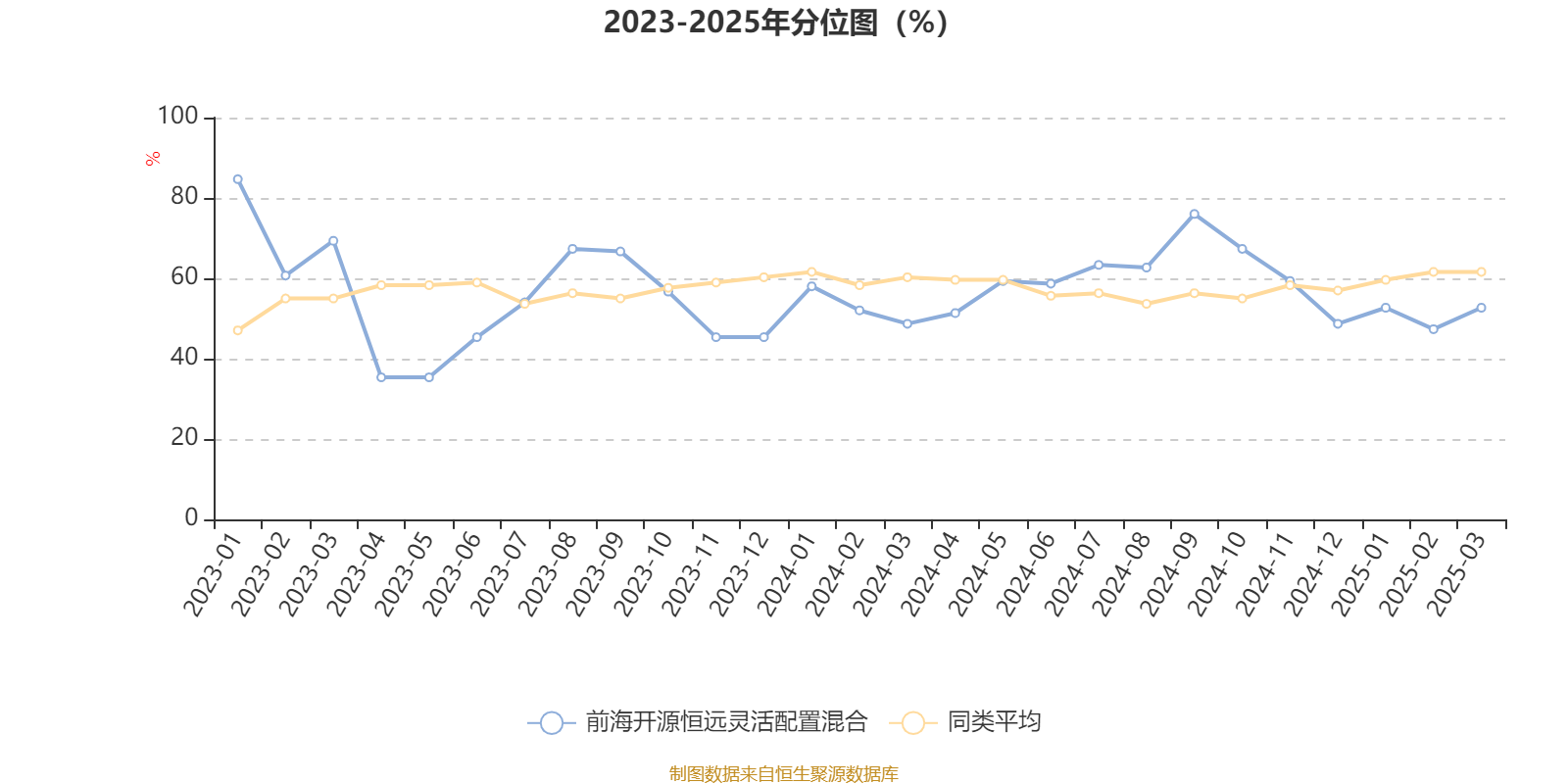 通过所选区间该基金净值增长率分位图,可以观察该基金与同类基金业绩比较情况。图为坐标原点到区间内某时点的净值增长率在同类基金中的分位数。