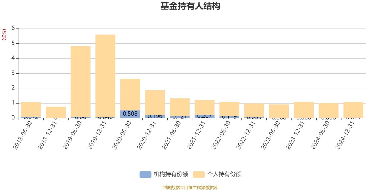 截至2024年12月31日,基金持有人共计8687户,合计持有1.07亿份。其中管理人员工持有6.98万份,占比0.07%,机构持有份额占比1.04%,个人投资者占比98.96%。