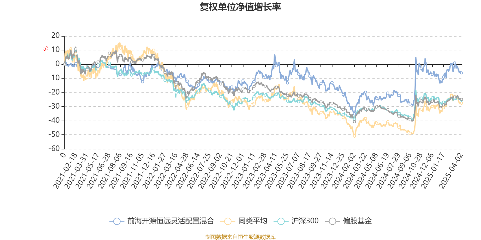 截至4月2日,前海开源恒远灵活配置混合近三个月复权单位净值增长率为6.58%,位于同类可比基金115/202;近半年复权单位净值增长率为0.51%,位于同类可比基金171/202;近一年复权单位净值增长率为23.06%,位于同类可比基金92/198;近三年复权单位净值增长率为0.64%,位于同类可比基金67/134。