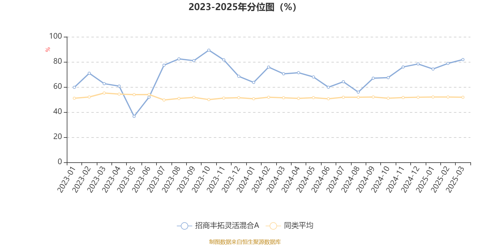 通过所选区间该基金净值增长率分位图,可以观察该基金与同类基金业绩比较情况。图为坐标原点到区间内某时点的净值增长率在同类基金中的分位数。