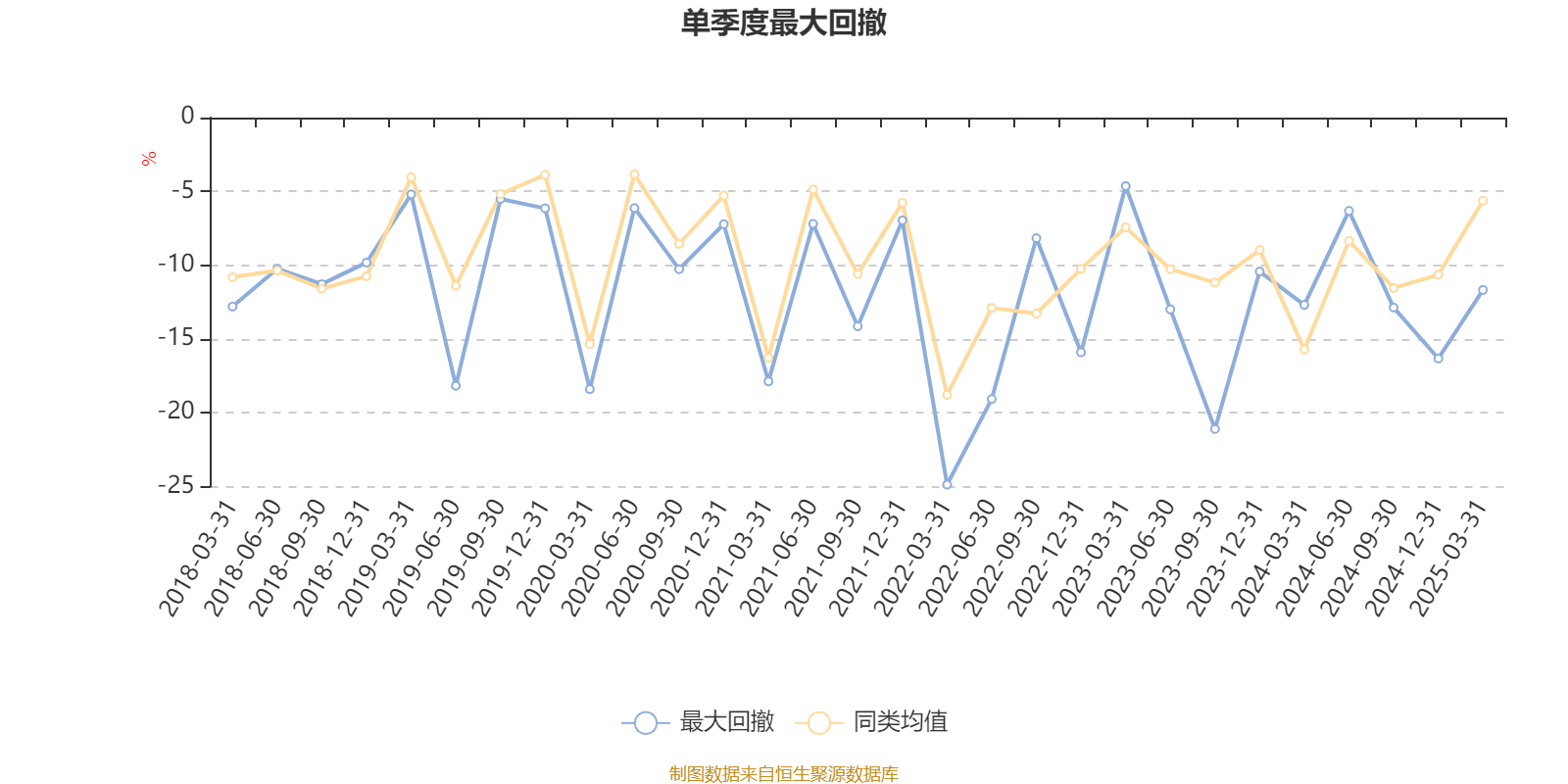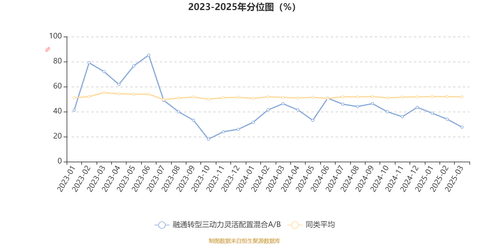 通过所选区间该基金净值增长率分位图,可以观察该基金与同类基金业绩比较情况。图为坐标原点到区间内某时点的净值增长率在同类基金中的分位数。