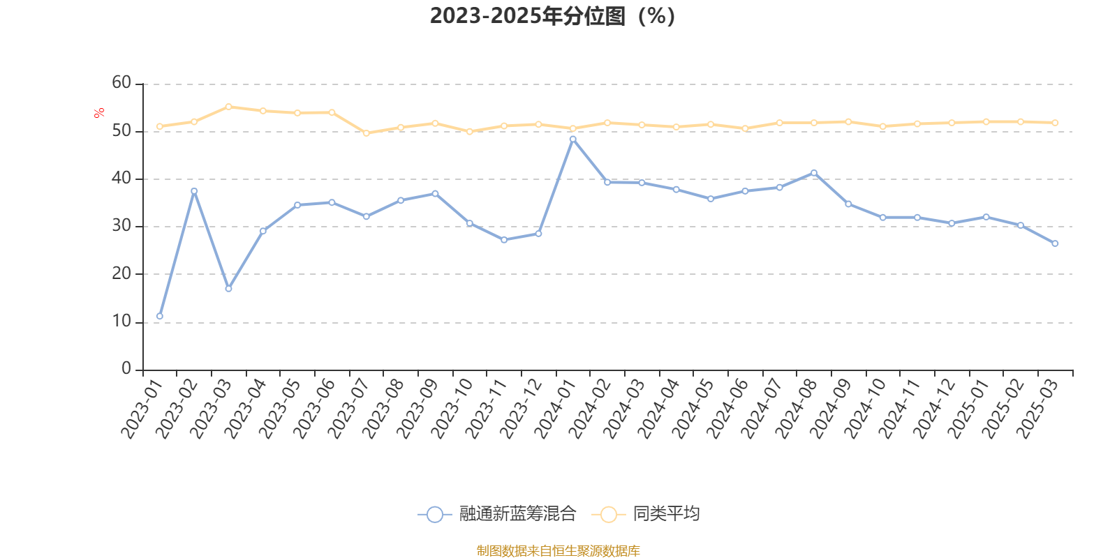 通过所选区间该基金净值增长率分位图,可以观察该基金与同类基金业绩比较情况。图为坐标原点到区间内某时点的净值增长率在同类基金中的分位数。
