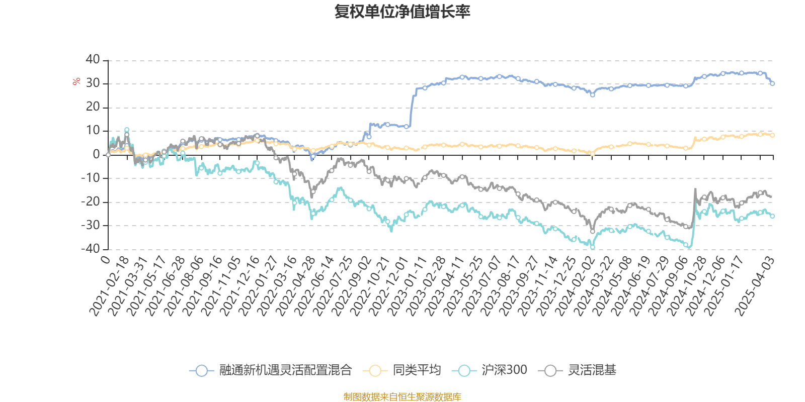 截至4月3日,融通新机遇灵活配置混合近三个月复权单位净值增长率为-3.10%,位于同类可比基金154/155;近半年复权单位净值增长率为-1.76%,位于同类可比基金141/155;近一年复权单位净值增长率为1.30%,位于同类可比基金130/155;近三年复权单位净值增长率为25.24%,位于同类可比基金3/154。