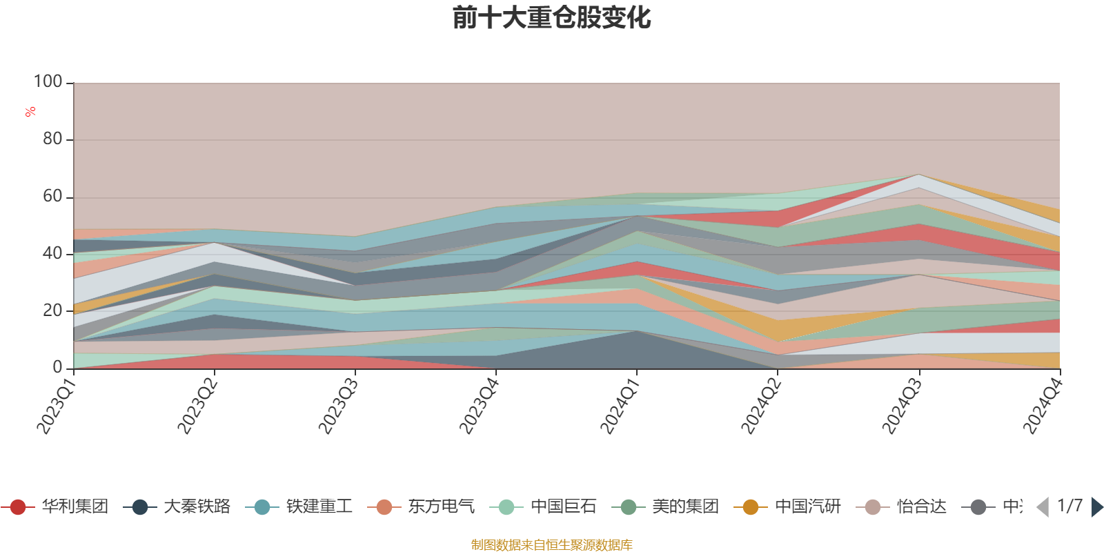 截至2024年末,基金十大重仓股分别是海油工程、银都股份、公牛集团、中国汽研、中国移动、敷尔佳、苏泊尔、丽珠集团、中集车辆、四方股份。