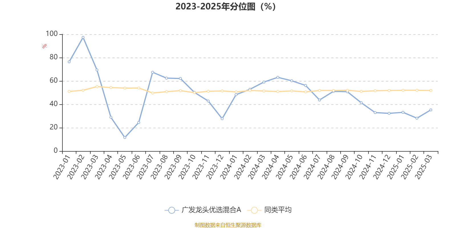 通过所选区间该基金净值增长率分位图,可以观察该基金与同类基金业绩比较情况。图为坐标原点到区间内某时点的净值增长率在同类基金中的分位数。