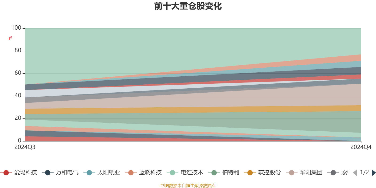 该基金持股集中度较高。截至2024年末,基金十大重仓股分别是伯特利、华阳集团、美的集团、振华股份、杰瑞股份、软控股份、立讯精密、电连技术、新宙邦、太阳纸业。
