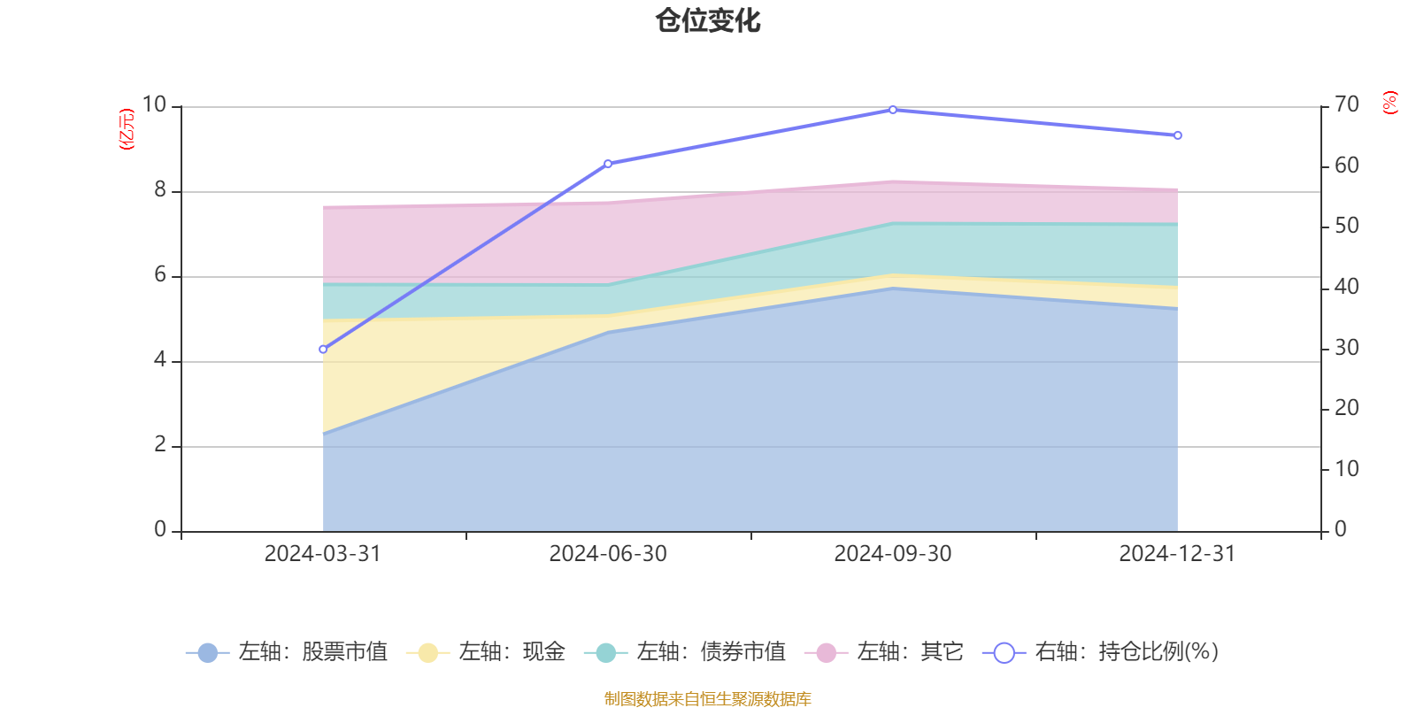 据定期报告数据统计,成立以来平均股票仓位为56.27%,同类平均为85.68%。2024年三季度末基金达到69.42%的最高仓位,2024年一季度末最低,为29.95%。