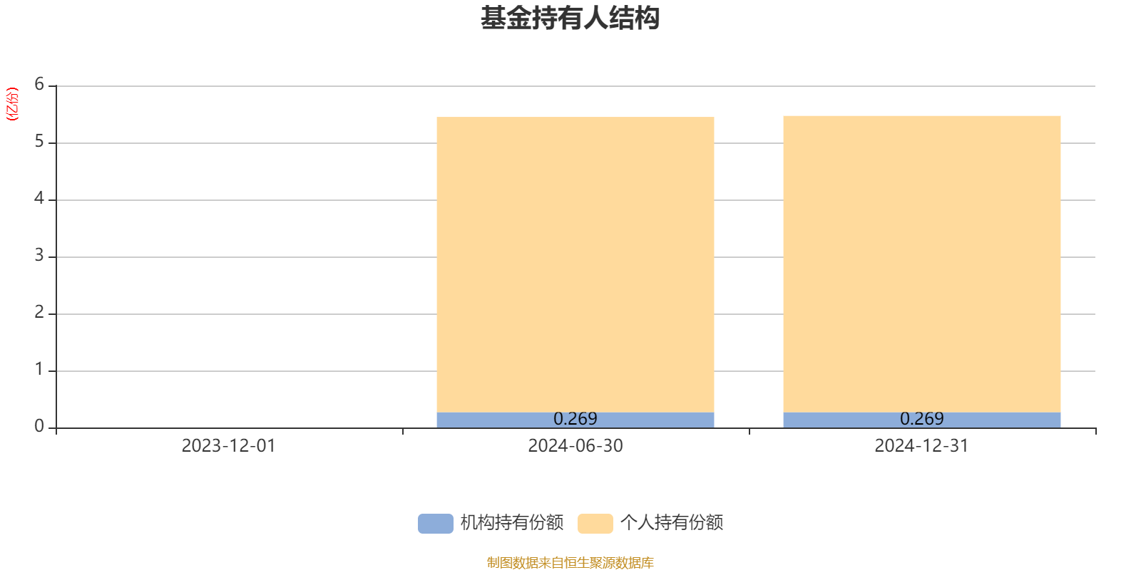 截至2024年12月31日,基金持有人共计1.57万户,合计持有5.47亿份。其中管理人员工持有1309.04万份,占比2.39%,机构持有份额占比4.93%,个人投资者占比95.07%。