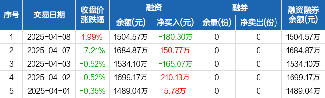 中证A50ETF基金:融资净偿还180.3万元,融资余额1504.57万元(04-08)