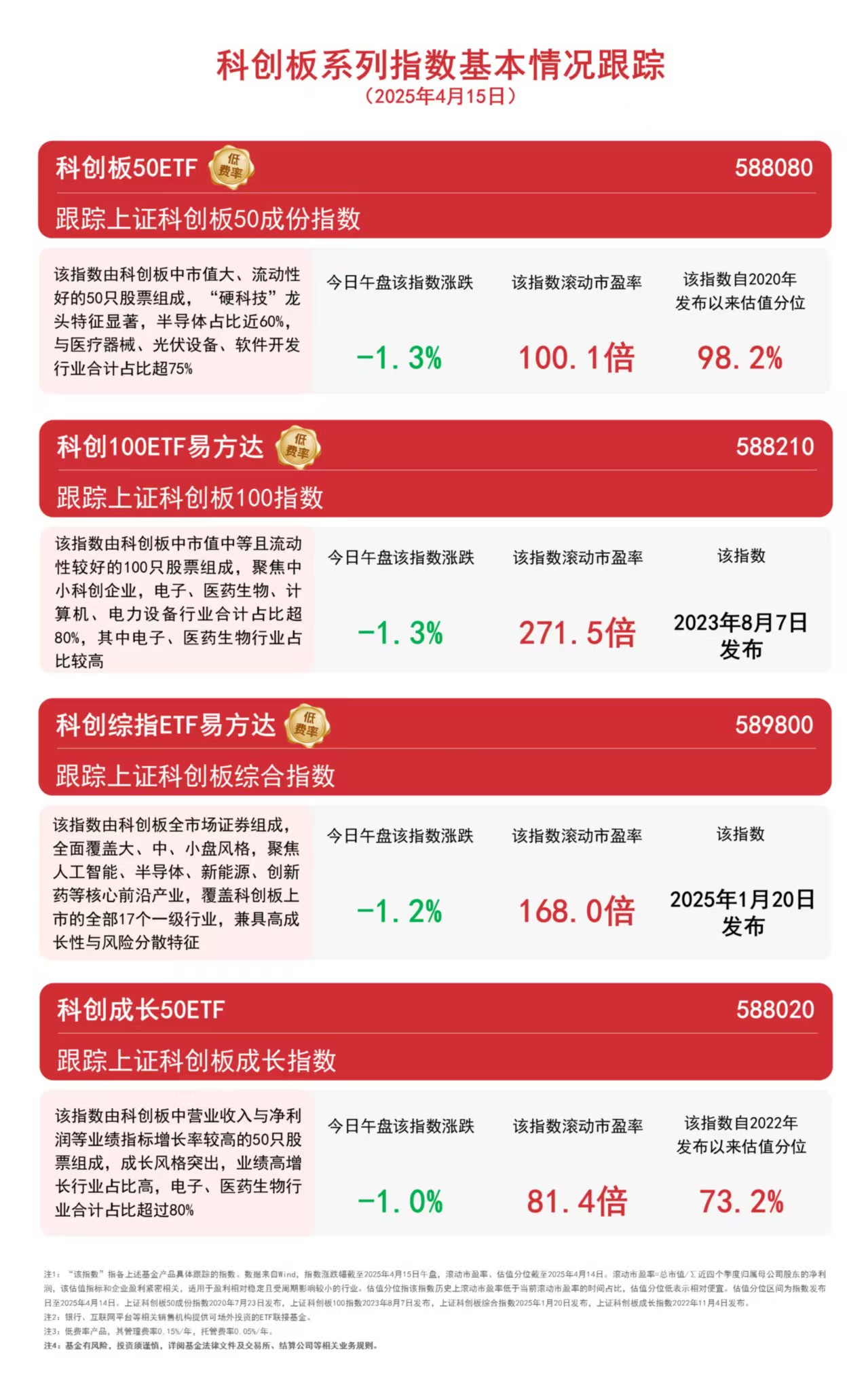 截至午盘,上证科创板成长指数下跌1.0%,科创综指下跌1.2%,上证科创板50成份指数、科创100指数均下跌1.3%。Wind数据显示,科创板50ETF(588080)昨日获超8400亿元净流入。