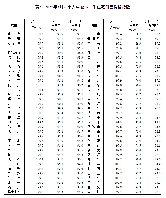 4月16日,国家统计局发布2025年3月份70个大中城市商品住宅销售价格变动情况。3月份,住房市场成交活跃度提升,70个大中城市中,商品住宅销售价格环比上涨城市个数增加;一线城市商品住宅销售价格环比上涨,二三线城市环比总体降幅收窄。