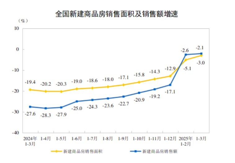 4月16日,国家统计局发布2025年1-3月份全国房地产市场基本情况。今年开年房地产调控政策的效应持续显效,全国新建商品房销售面积降幅收窄至3.0%;受销售端改善带动,一季度行业到位资金也较去年改善明显。业内分析称,二季度宏观政策或加速发力,核心城市市场将继续修复并进一步带动行业企稳。