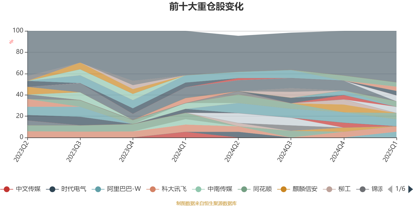 该基金持股集中度较高。截至2025年一季度末,基金十大重仓股分别是腾讯控股、快手-W、鹏鼎控股、瑞芯微、阿里巴巴-W、恒玄科技、科大讯飞、金山办公、合合信息、乐鑫科技。