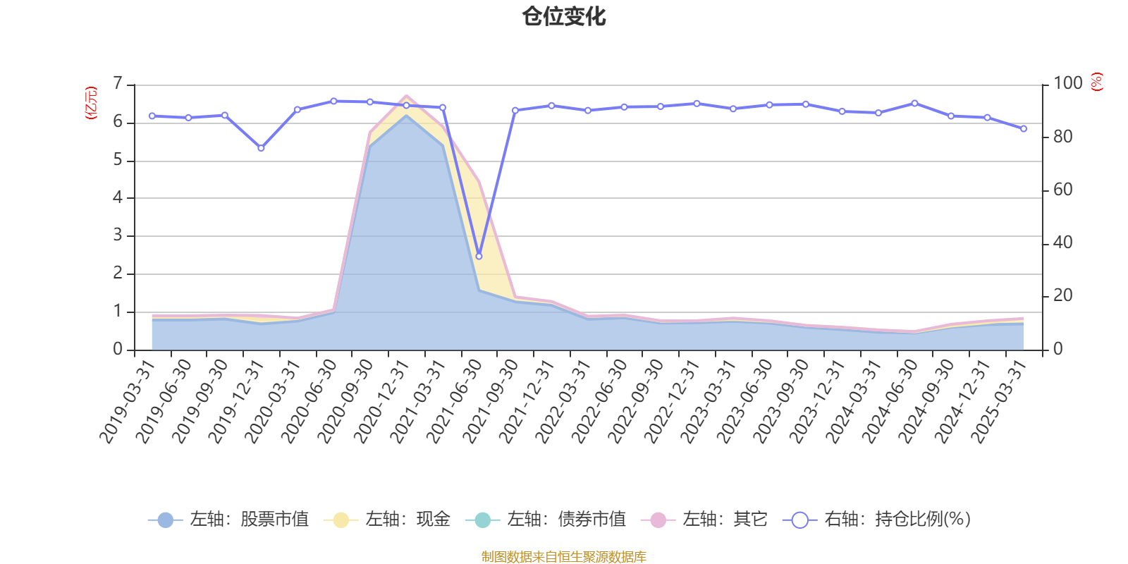 据定期报告数据统计,近三年平均股票仓位为90.29%,同类平均为88.08%。2020年上半年末基金达到93.78%的最高仓位,2021年上半年末最低,为35.31%。